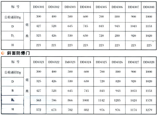 防爆門分膜板式和重力式兩種類型。 膜板式防爆門又分圓形防爆門、斜面防爆門、圓形帶活動短管防爆門、400×600帶活動短管防爆門,通常布置于熱風送粉管道上,斜面防爆門通常布置于戶外。帶活動短管防爆門布置于煤粉倉系統。重力防爆門有水平布置和垂直布置兩種,主要用于煙道。防爆門的作用是當煤粉受熱膨脹時,造成系統壓力過高,氣流沖破膜板或頂開重力蓋而泄壓,達到保護設備和管道的目的。該系列防爆門皆按照74DD標準(D-LD2000標準)制作。